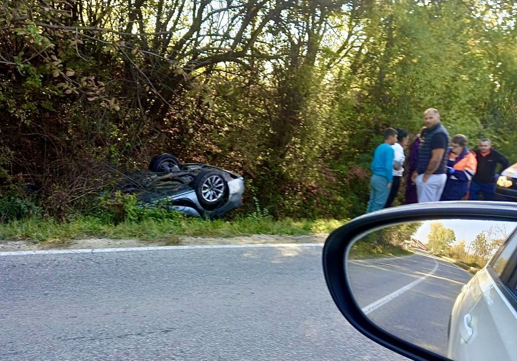 Accident grav în Argeș: Un autoturism s-a răsturnat