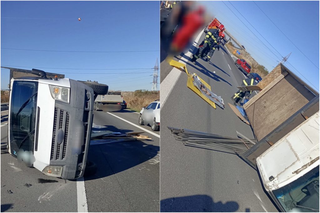 Un accident rutier a avut loc în această dimineață pe Autostrada A1, pe sensul București-Pitești, la ieșirea Teiu. Din informațiile preliminare, în eveniment au fost implicate o autoutilitară răsturnată și un autoturism.