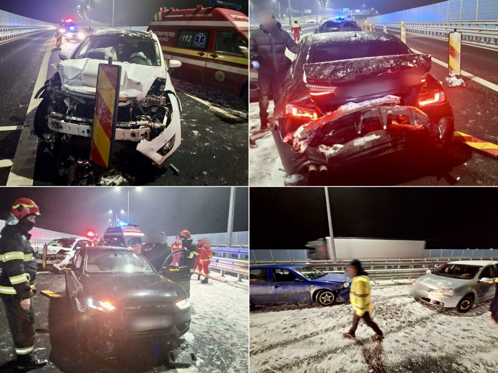 Pompierii de la Detașamentul Curtea de Argeș și echipajele Serviciului de Ambulanță Județean intervin la un accident rutier grav produs pe autostrada A1, sensul Pitești – Curtea de Argeș, unde sunt implicate șapte vehicule, conform primelor informații oferite de autorități.