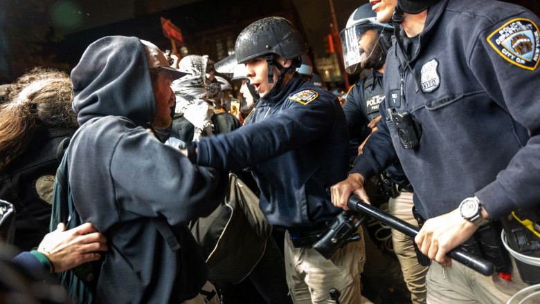 Galerie Foto Violențe la Universitatea Columbia. Polițiștii din New York au intervenit în forță în campusul blocat de manifestanți. 100 de arestări