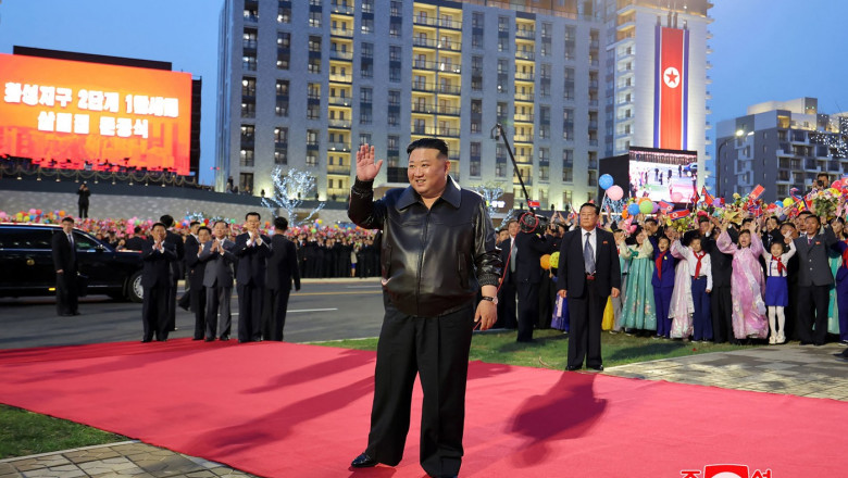 Odă pentru "Prietenosul Tată" Kim în Coreea de Nord - Cântec nou și focuri de artificii la inaugurarea de noi locuințe (VIDEO)