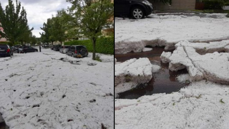Strat de 30 de centimetri de grindină pe străzi din Franța. Într-o localitate din Olanda, din toalete a răbufnit gheață (VIDEO)
