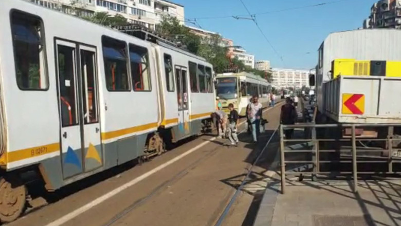 Două tramvaie s-au ciocnit în București la intersecția dintre Doina Cornea și Splaiul Independenței